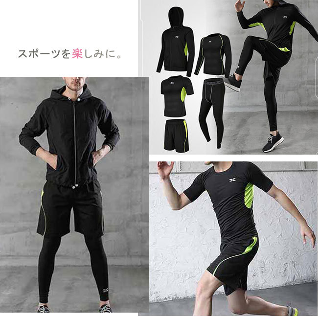 スポーツウェア メンズ 上下セット 5点セット 4タイプ ランニングウェア おしゃれ シャツ スポーツパンツ レギンス 吸汗 速乾 バーゲンで